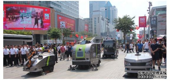 今年8月,全球首个5G无人驾驶环卫机器人编队亮相长沙岳麓山5G大学城,组队欢迎入学新生,迎接新学期的到来。
